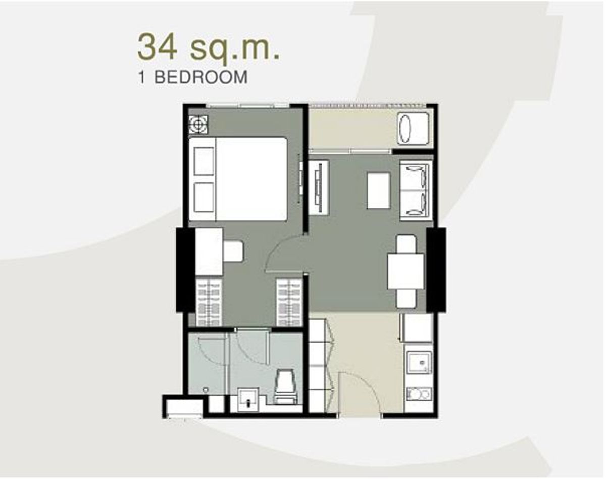 - 1 ห้องนอน / 1 ห้องน้ำ