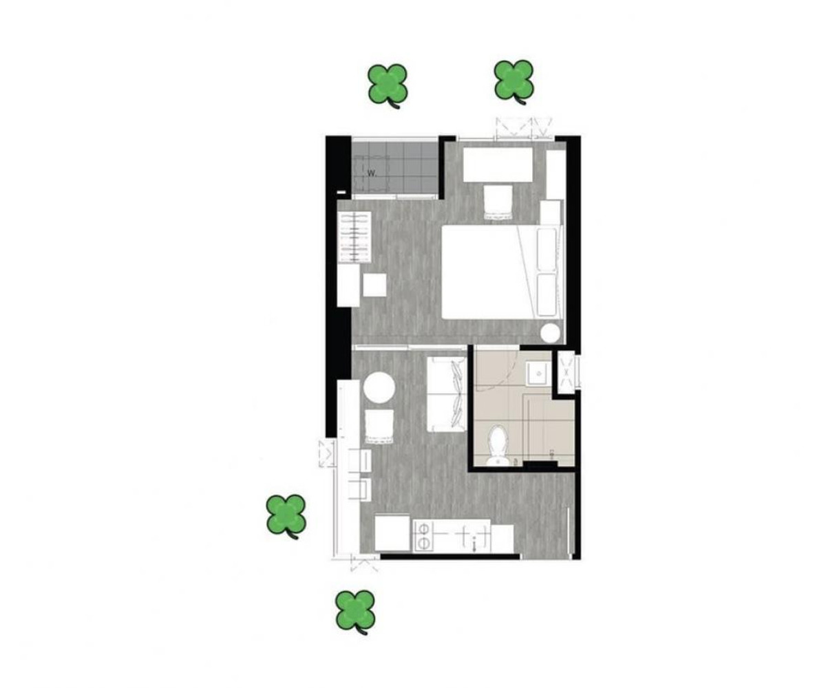 - 1 ห้องนอน / 1 ห้องน้ำ