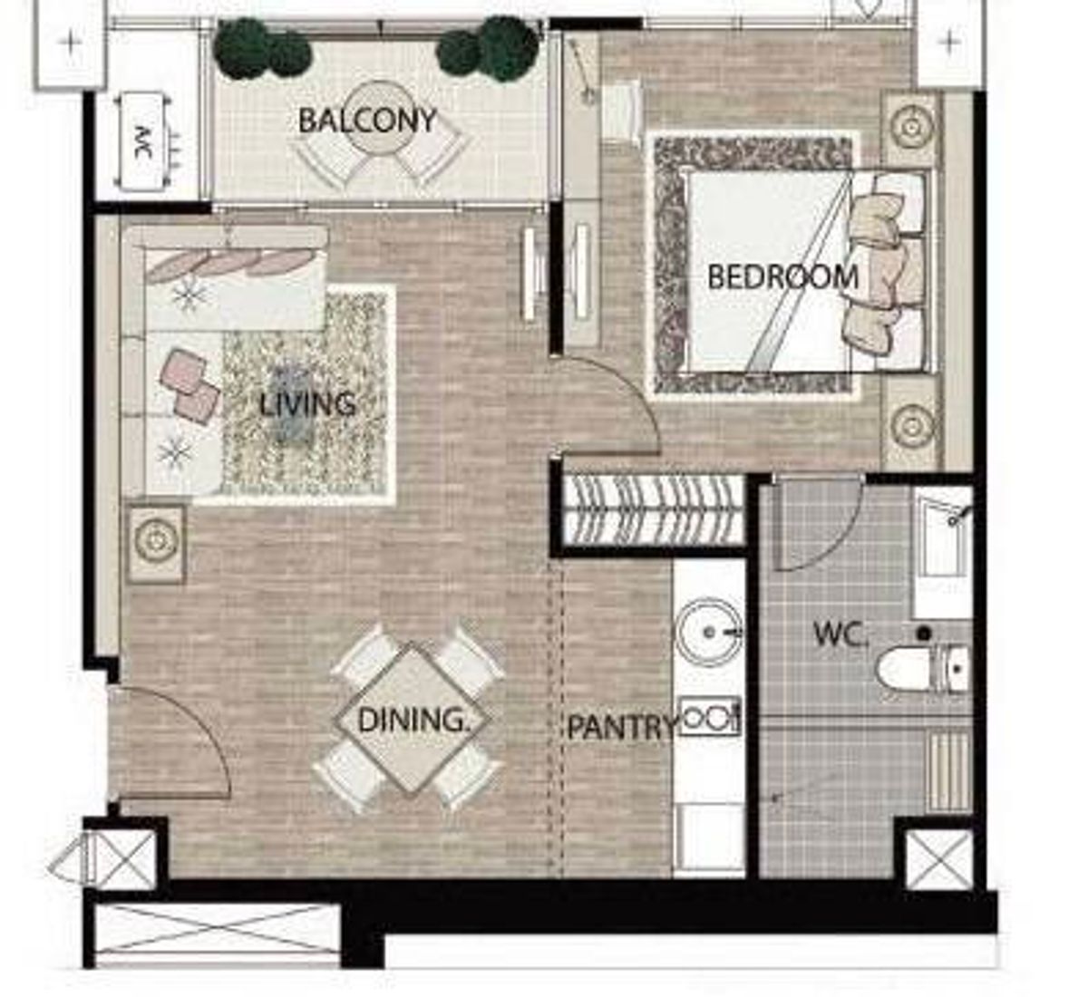 - 1 ห้องนอน / 1 ห้องน้ำ